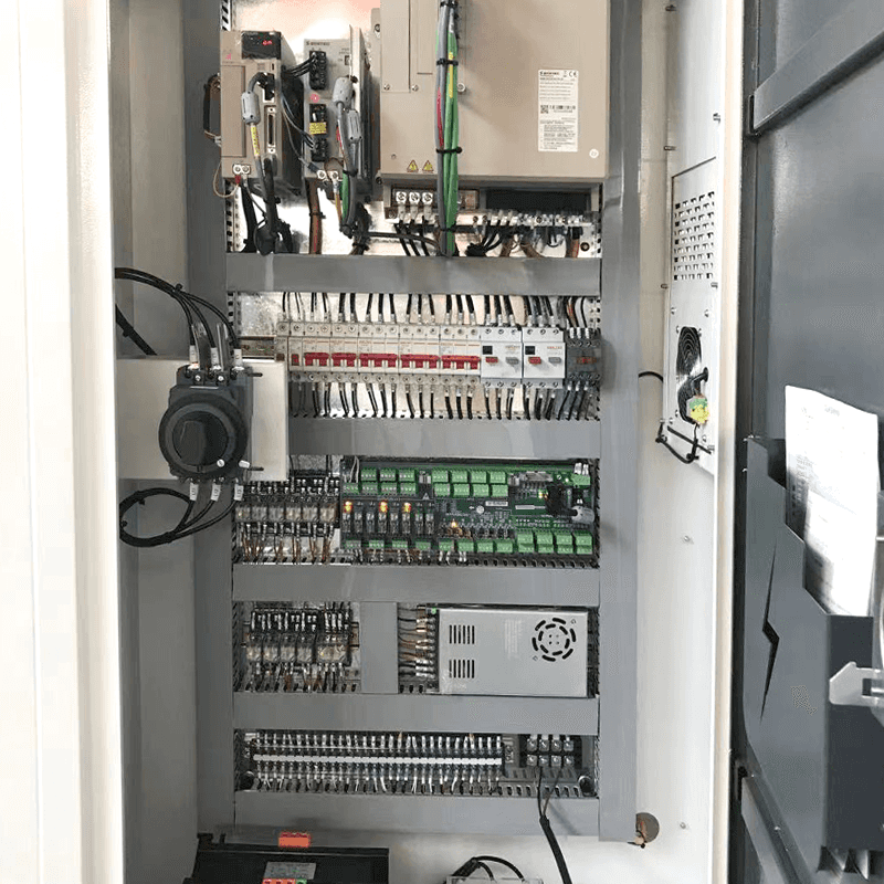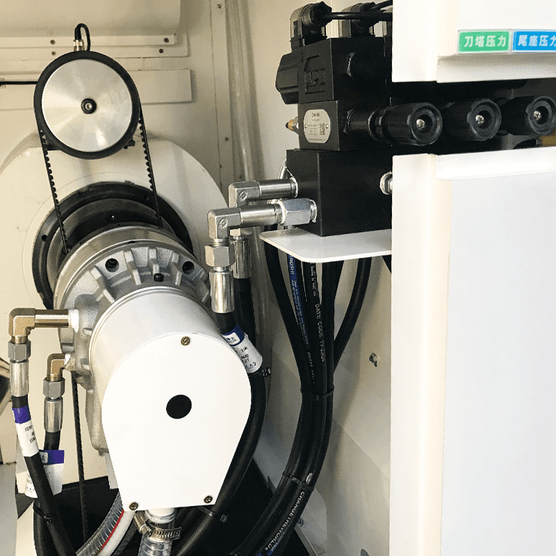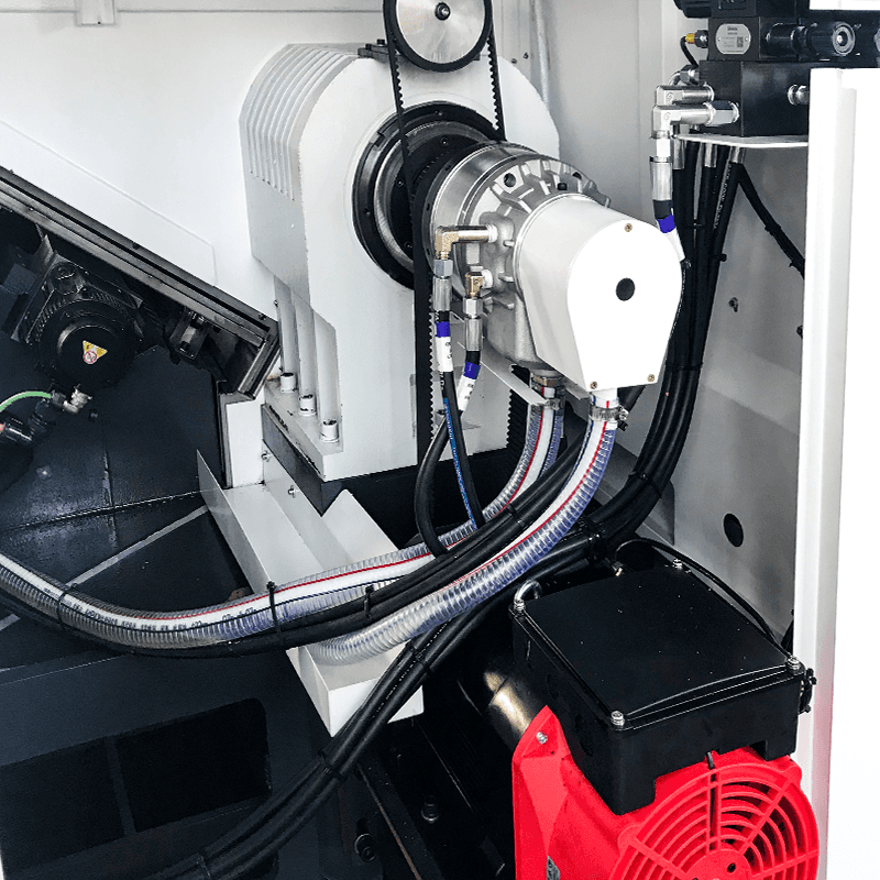 Vřeteno je poháněno servomotorem, aby se zajistil vysoký výstup točivého momentu, když vřeteno běží při nízké rychlosti. To také způsobuje, že vřeteno začíná a zastavuje rychleji a rychlost běží hladce.